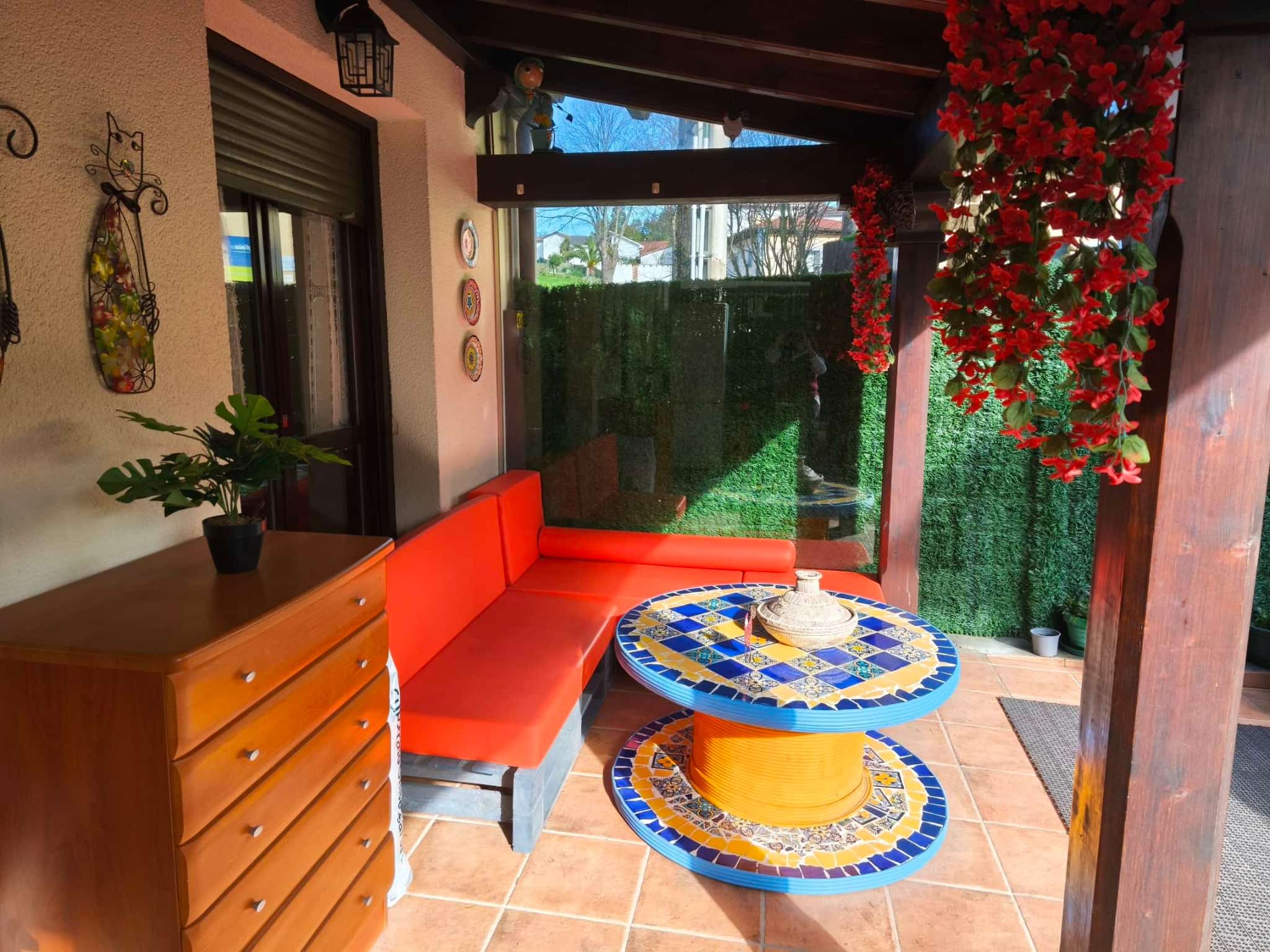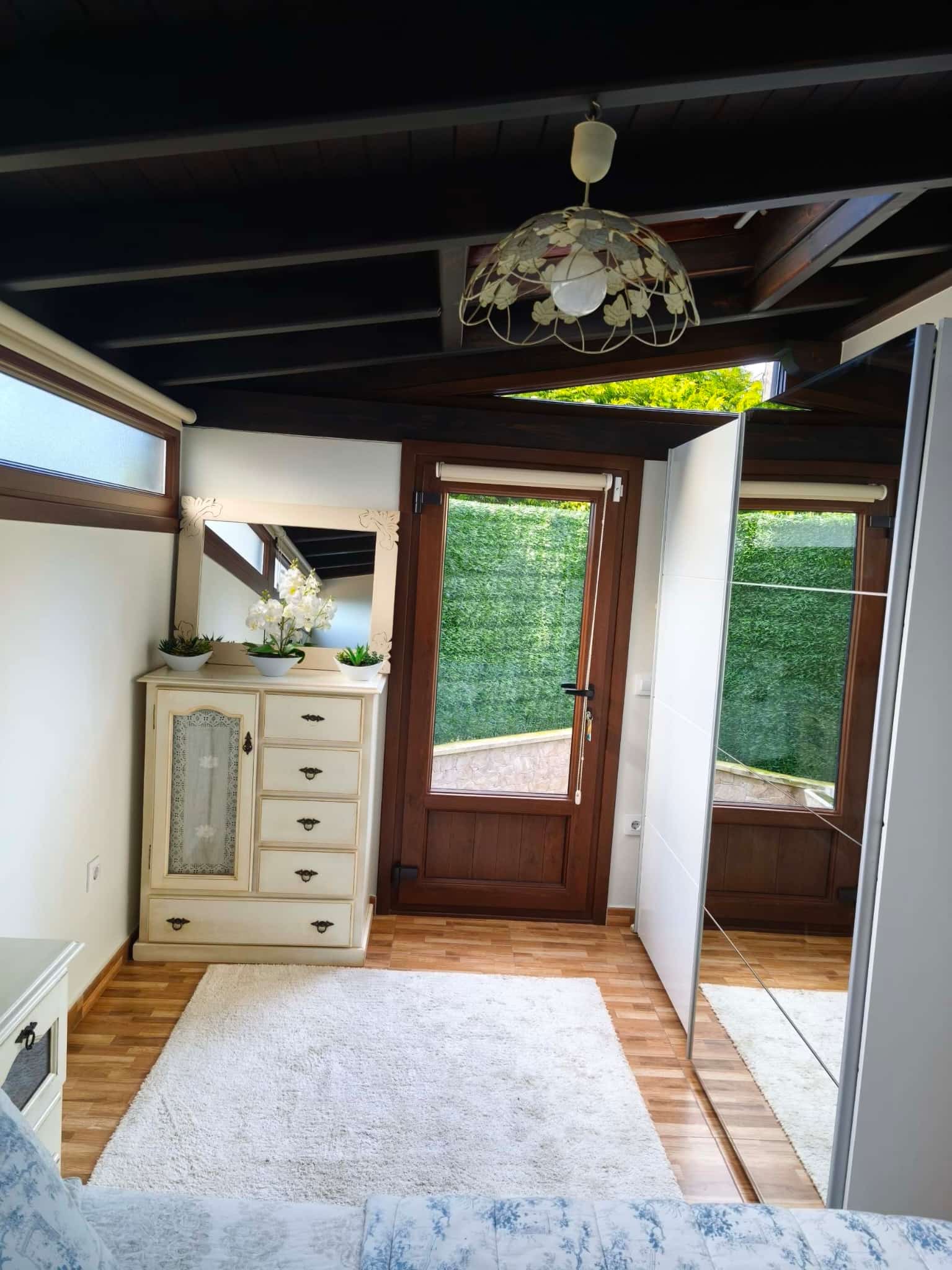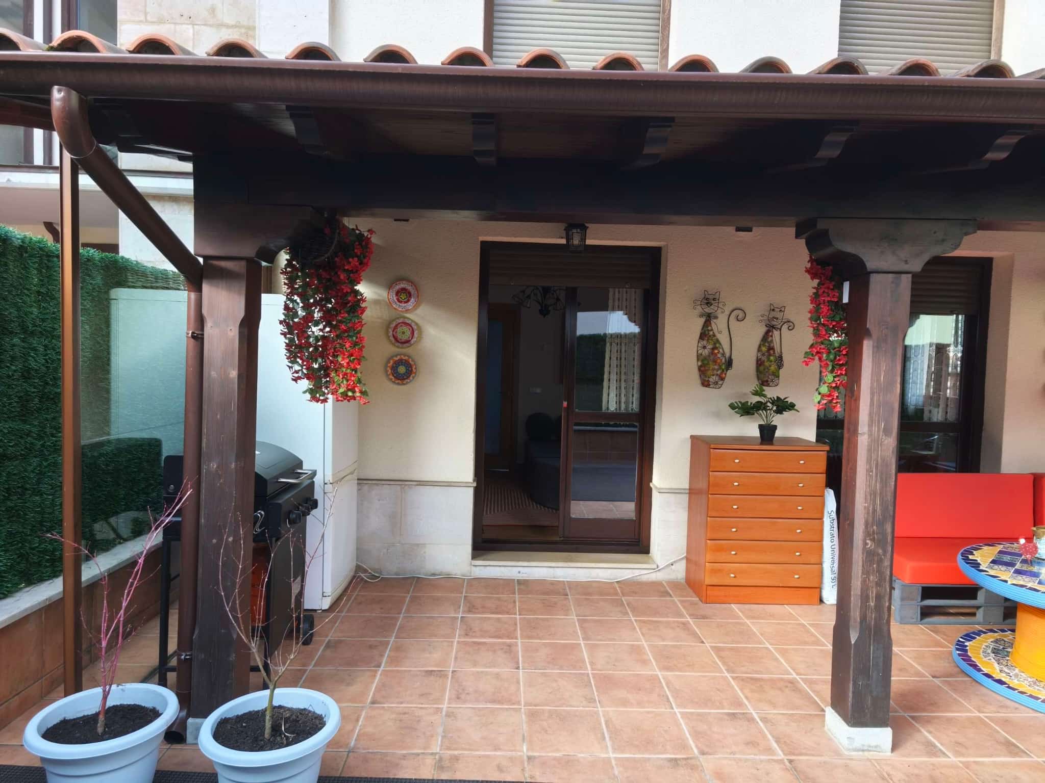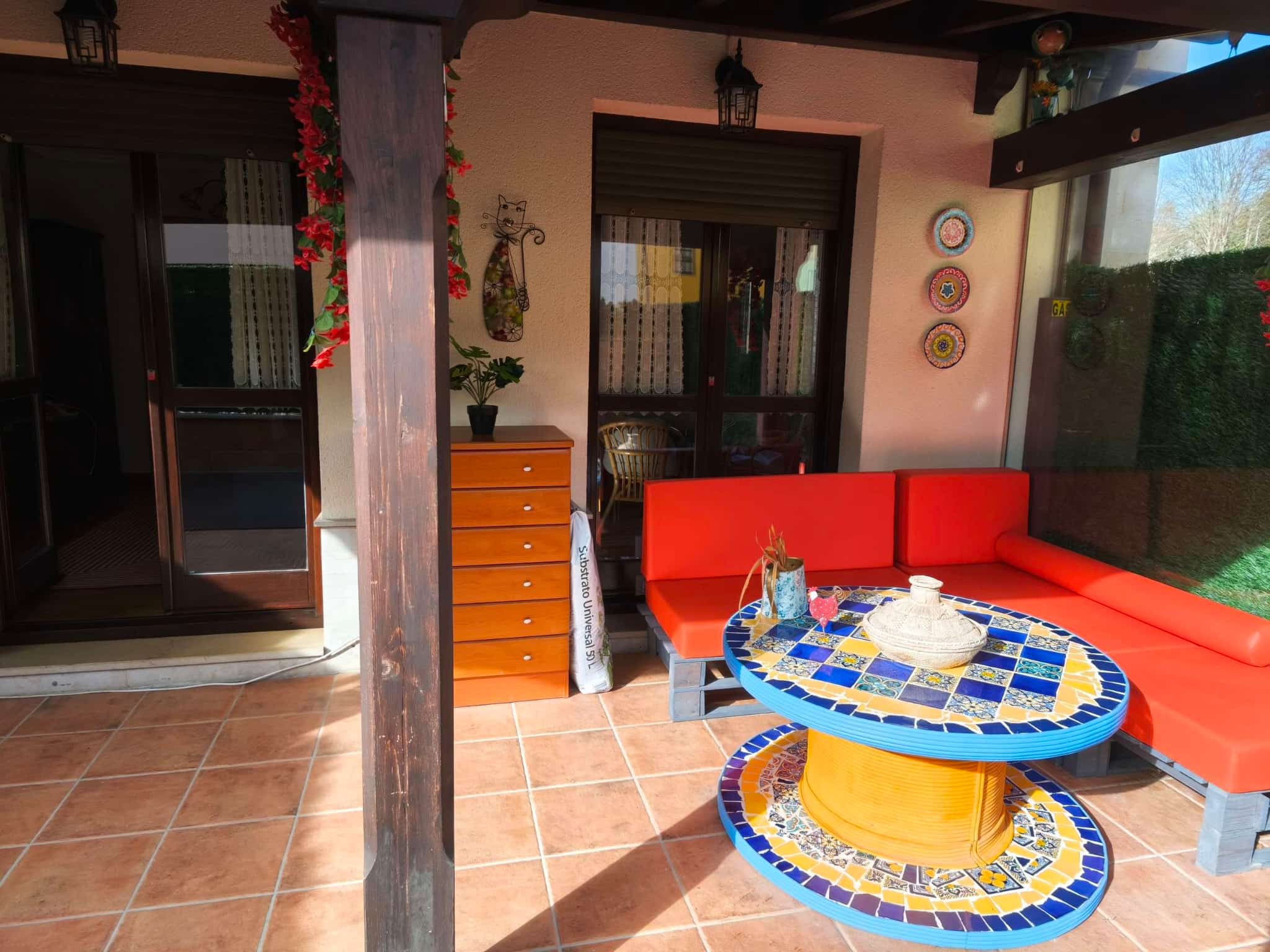 Destaca por sus dos terrazas: una orientada al sur con un magnífico porche de aproximadamente 25–30 m², perfecta para disfrutar del sol y del aire libre, y otra terraza trasera orientada al norte, que aporta frescor y ventilación en los meses de verano.