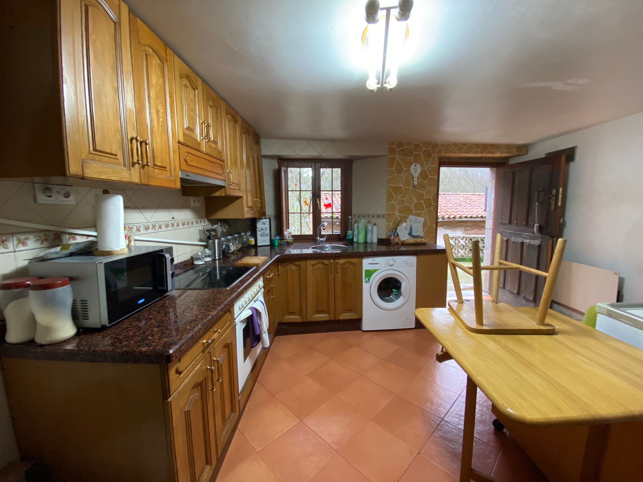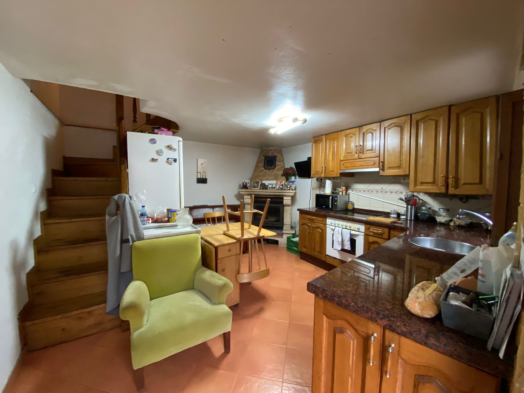 Planta Baja: salón-comedor-cocina con chimenea de leña.